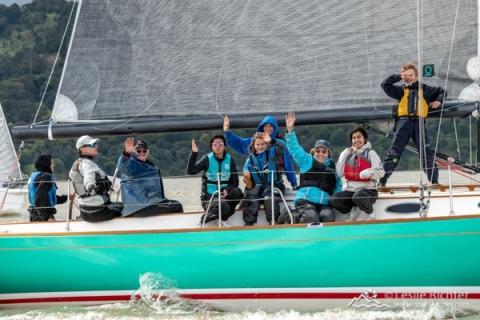 Another Girl, an Alerion Express 38 races for the Richmond Yacht Club in Pt. Richmond, CA. RYC is a fun sailing club with an active Junior Program. They get over 30 boats out to race Beer Can on Wednesday nights, public welcome, walk down the dock, hop on a boat. Summer Sailstice boats will be out racing, sailing, cruising. Another Girl will be racing in the Intra Club Regatta and Junior sailors will drive and crew! Picture tells the story, kids drive, tons of fun on SF Bay!